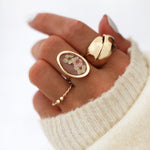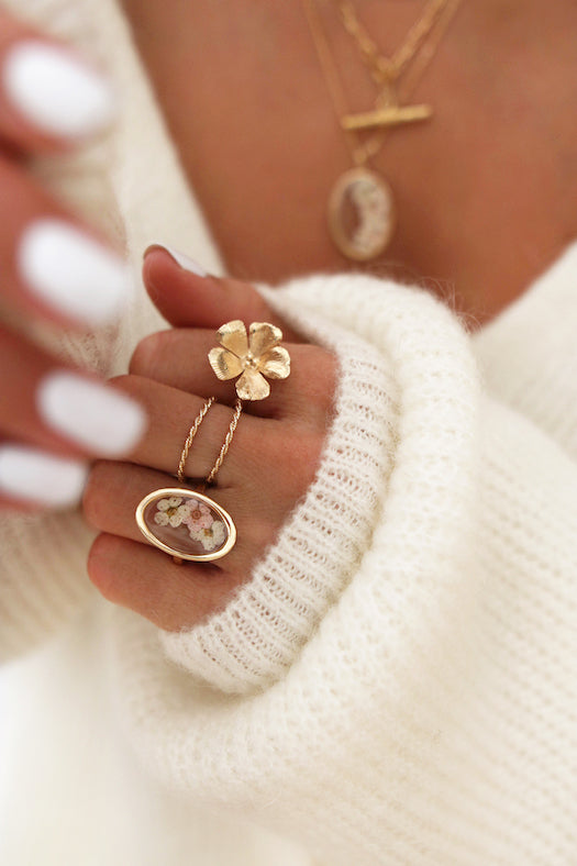 - Bague réalisée artisanalement dans notre atelier parisien. Chaque pièce est unique et présente ses propres irrégularités (bulles d'air, craquelures ...). Il peut exister de légères variations de tailles et de couleurs