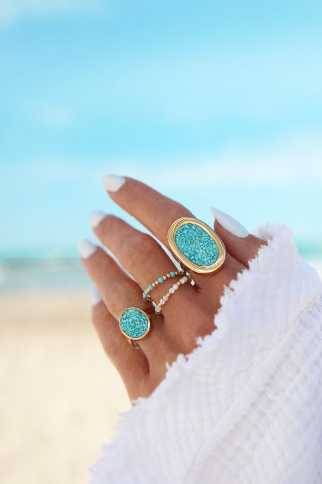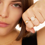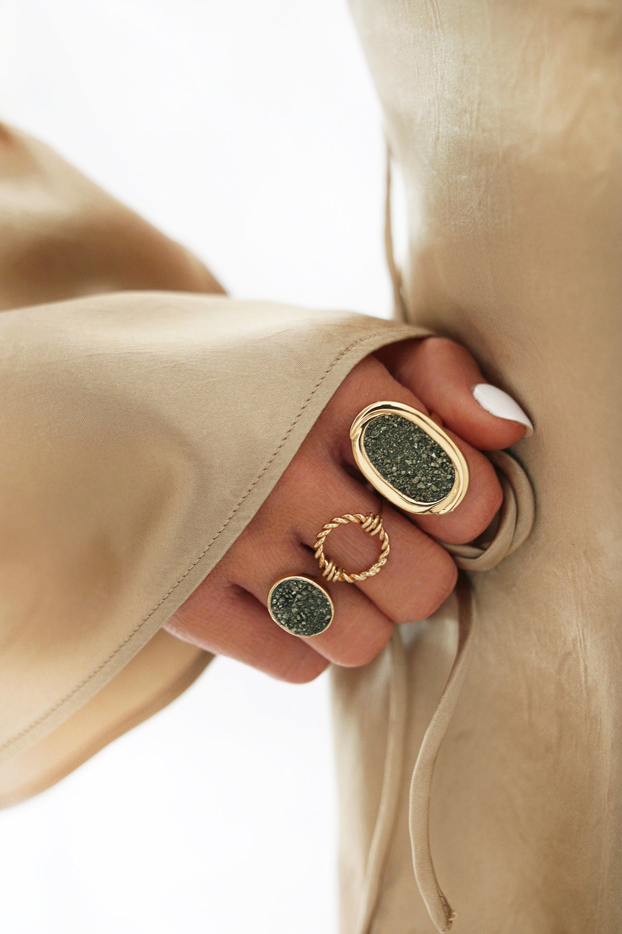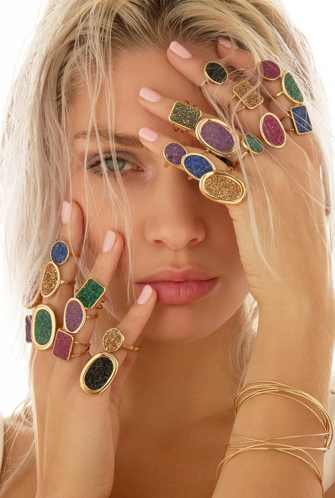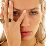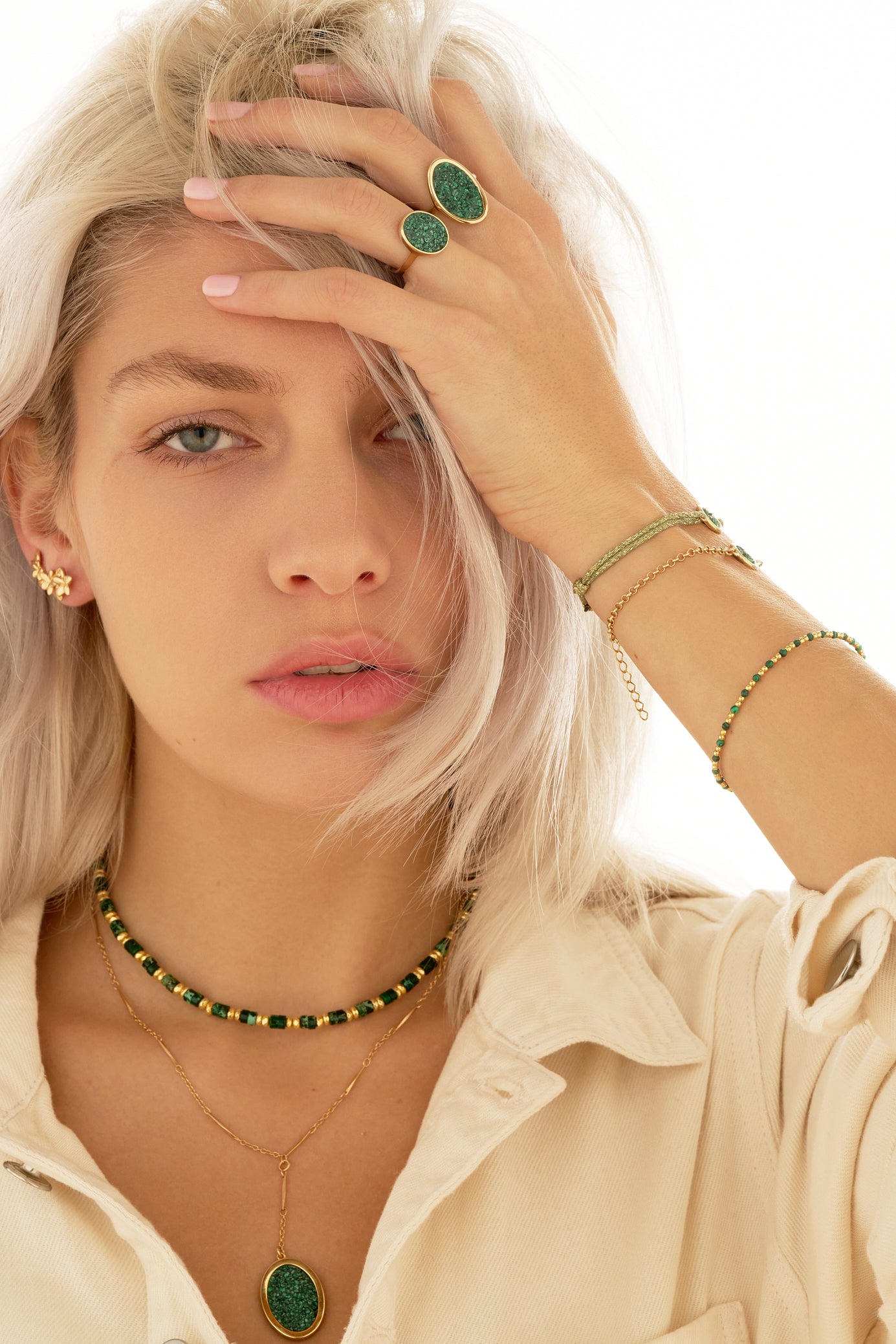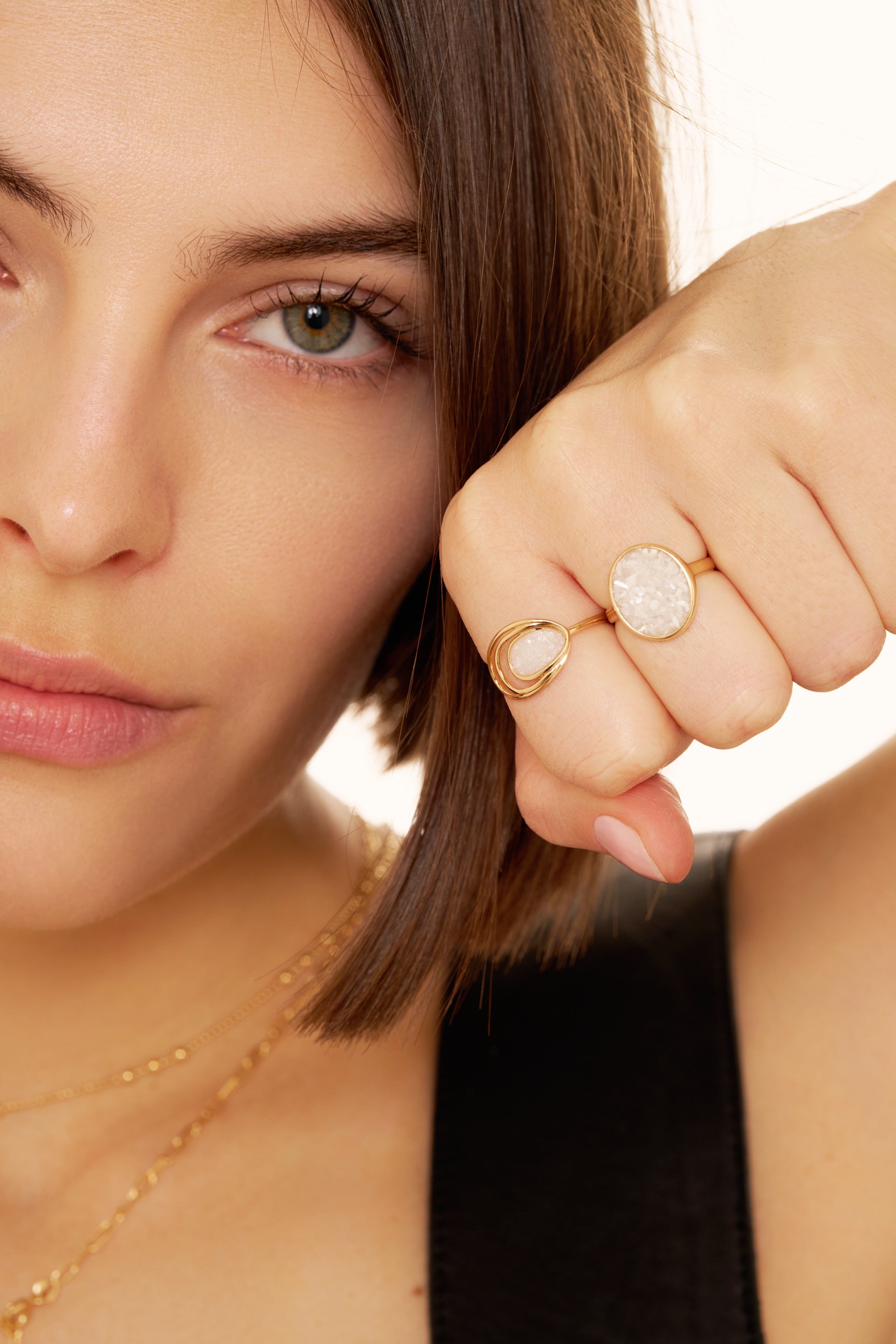 - Bague imaginée et réalisée artisanalement dans notre atelier parisien. Chaque pièce est unique et présente ses propres irrégularités (variations de couleur et de taille des fragments de pierres)..
