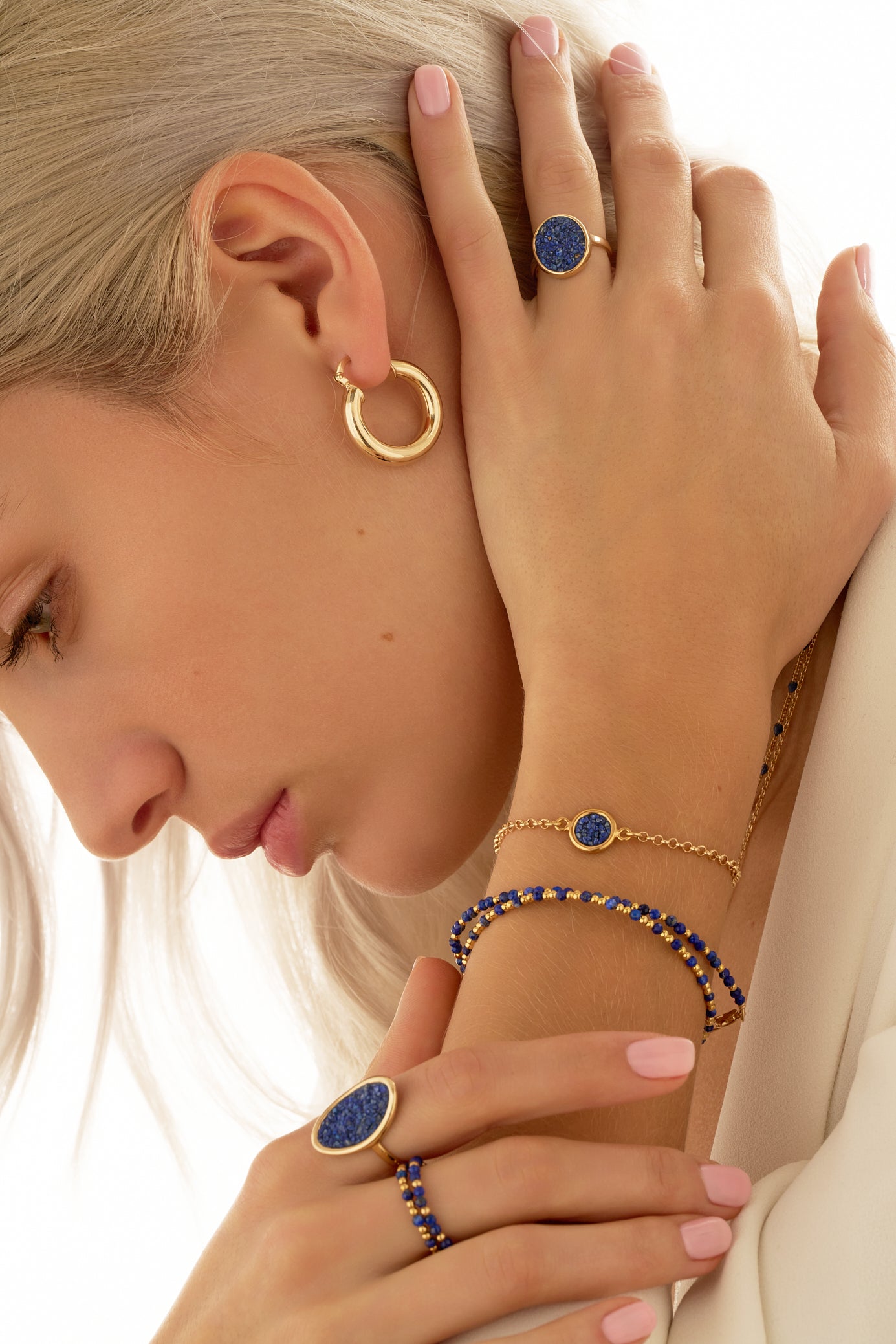 - Bague ronde en plaqué or et incrustation de pierres fines