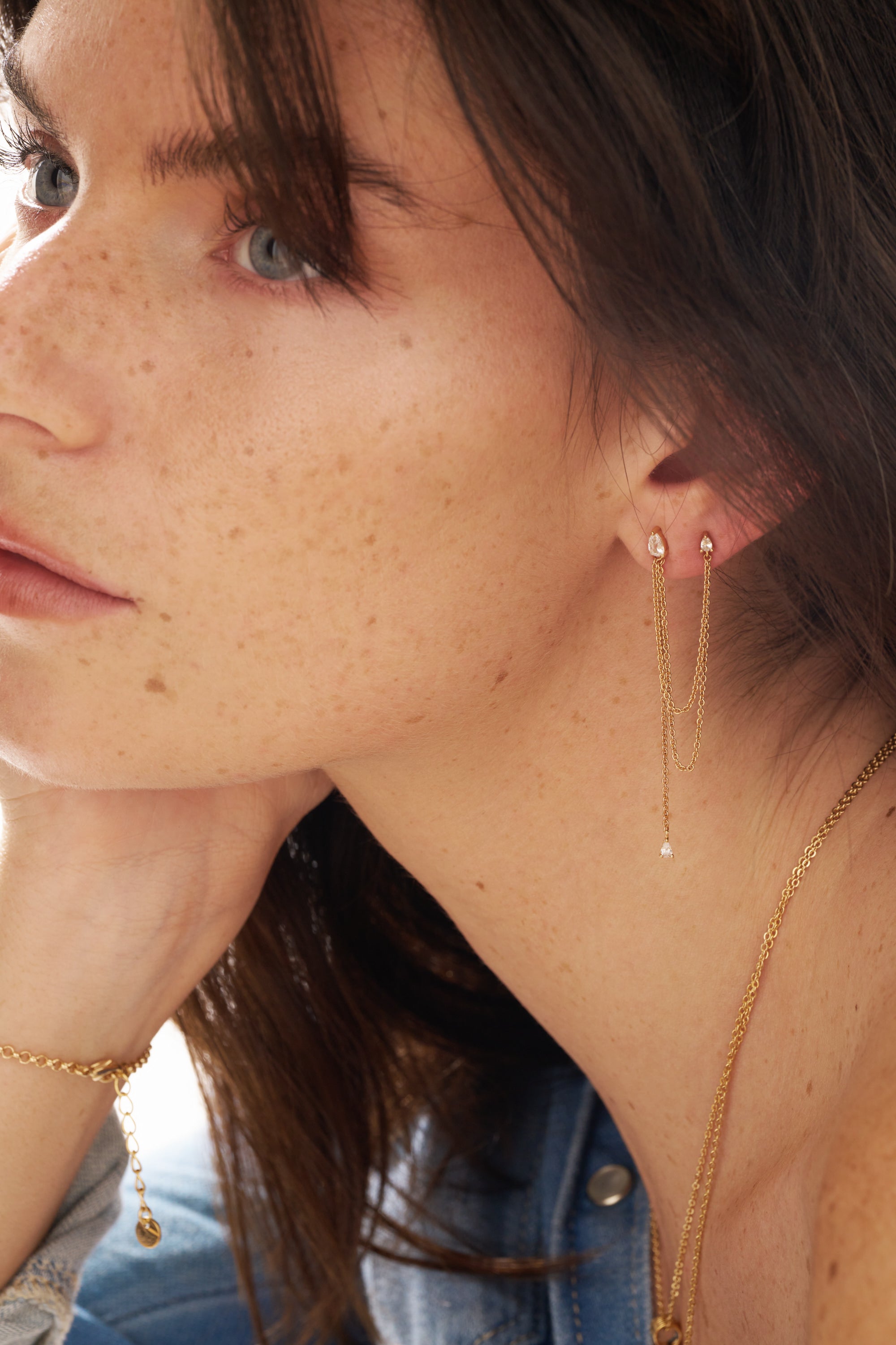 Bijou en plaqué or réalisé sur une base en laiton, sans nickel, ni cadmium. L’épaisseur d’or déposé est de 3 microns sans dispersion pour optimiser la tenue de la couleur.