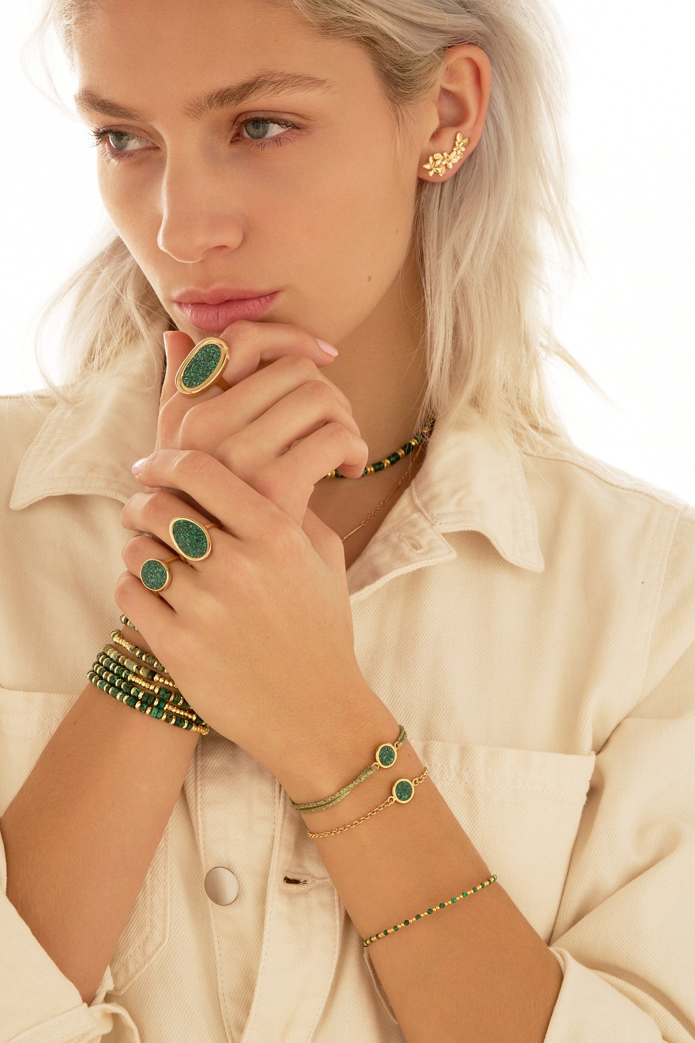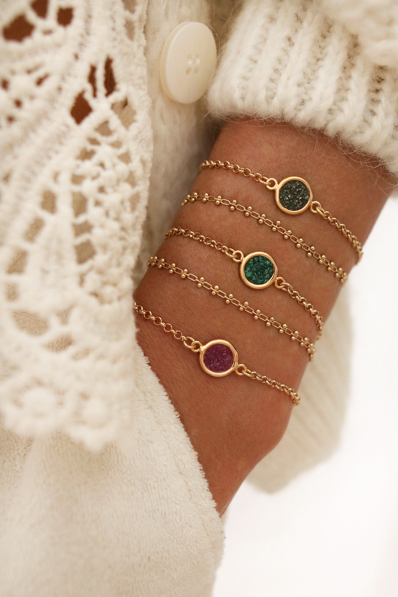- Bracelet maille jaseron doré 1 micron, résine et pierre fines