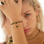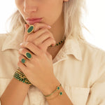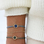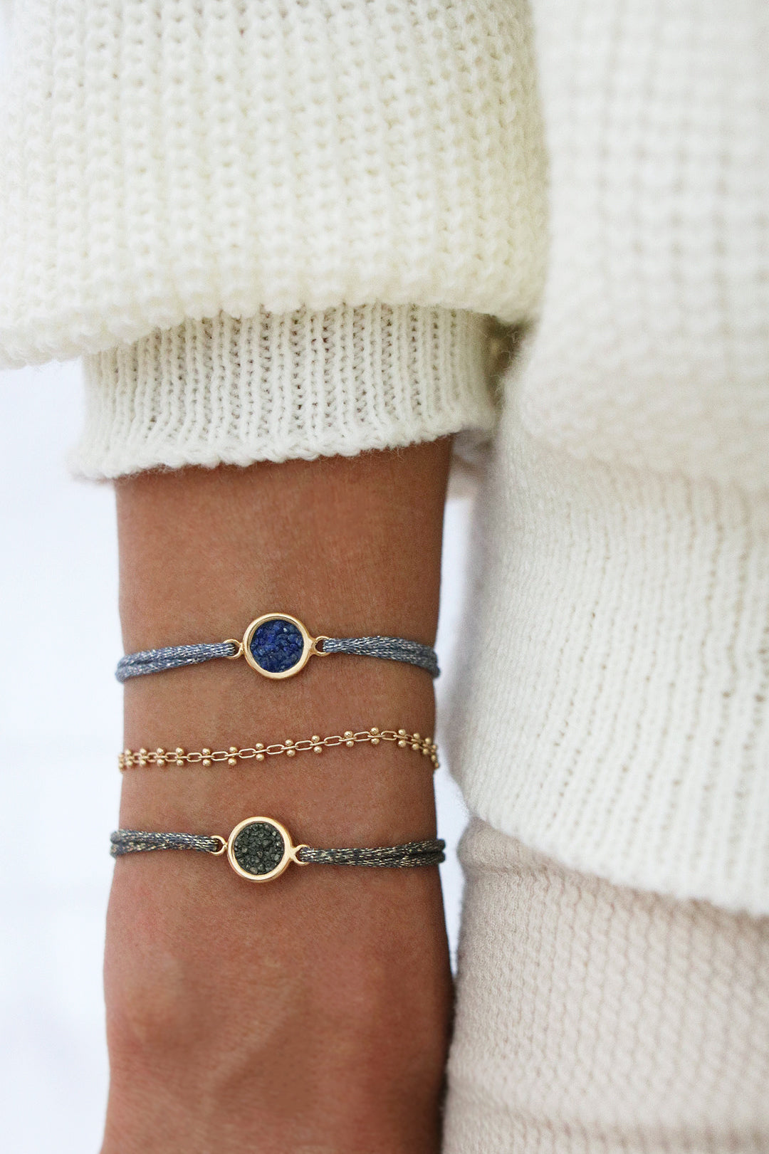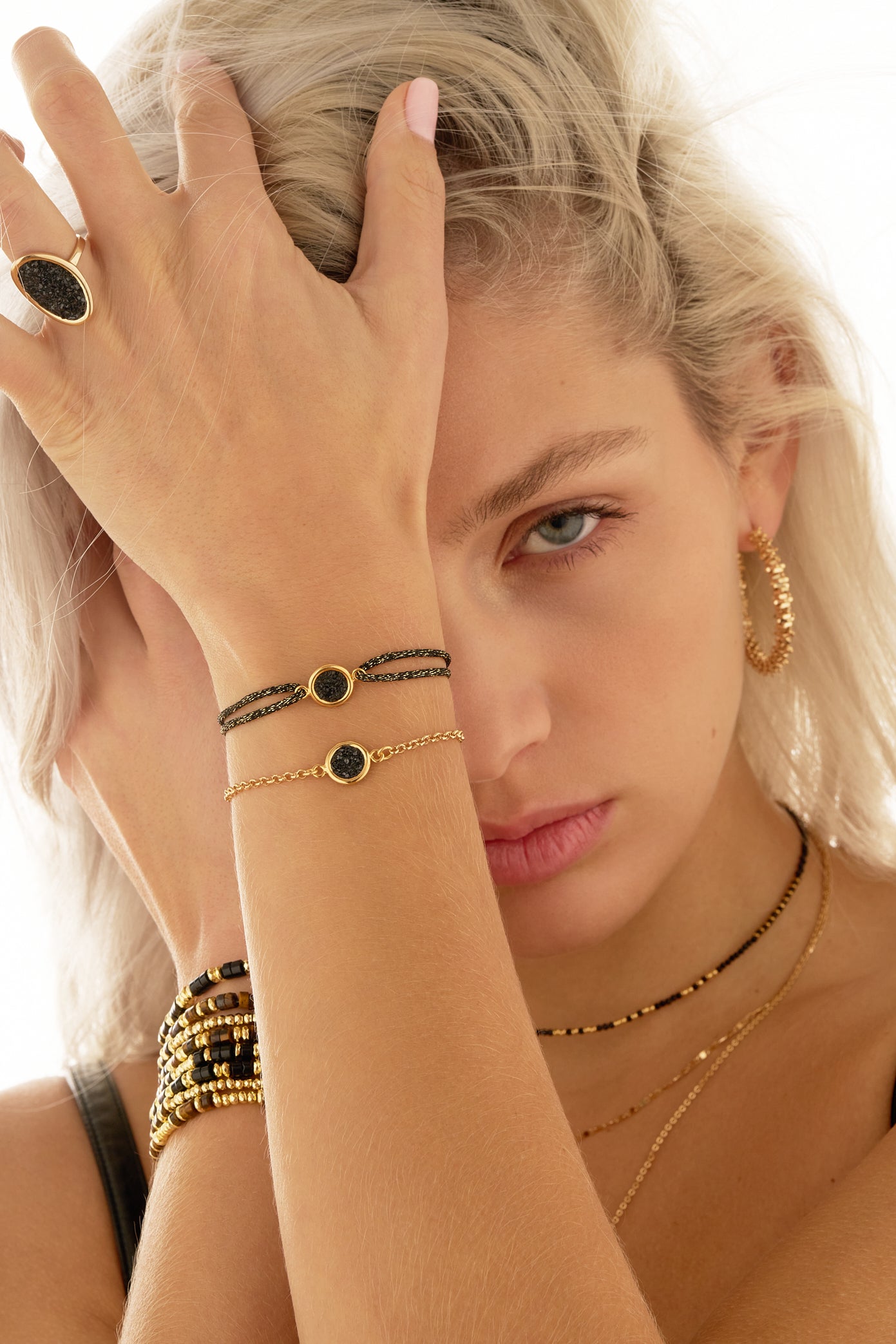 - Bracelet doré 1 micron, résine et pierre fines sur un cordon en fil d'argent pur recouvert d'un fil en polyester