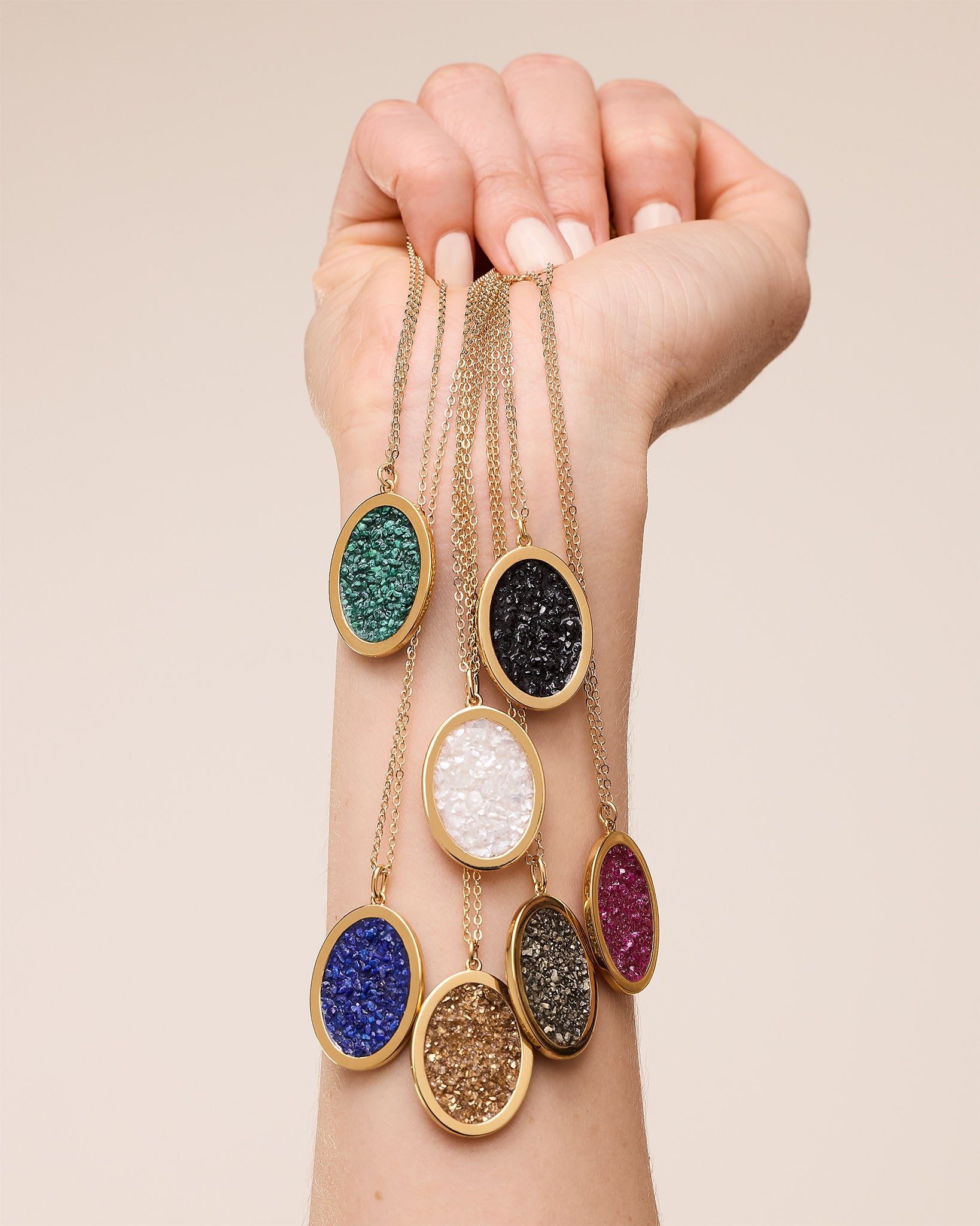 - Collier doré 1 micron, résine et fragments de pierres fines