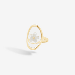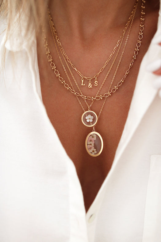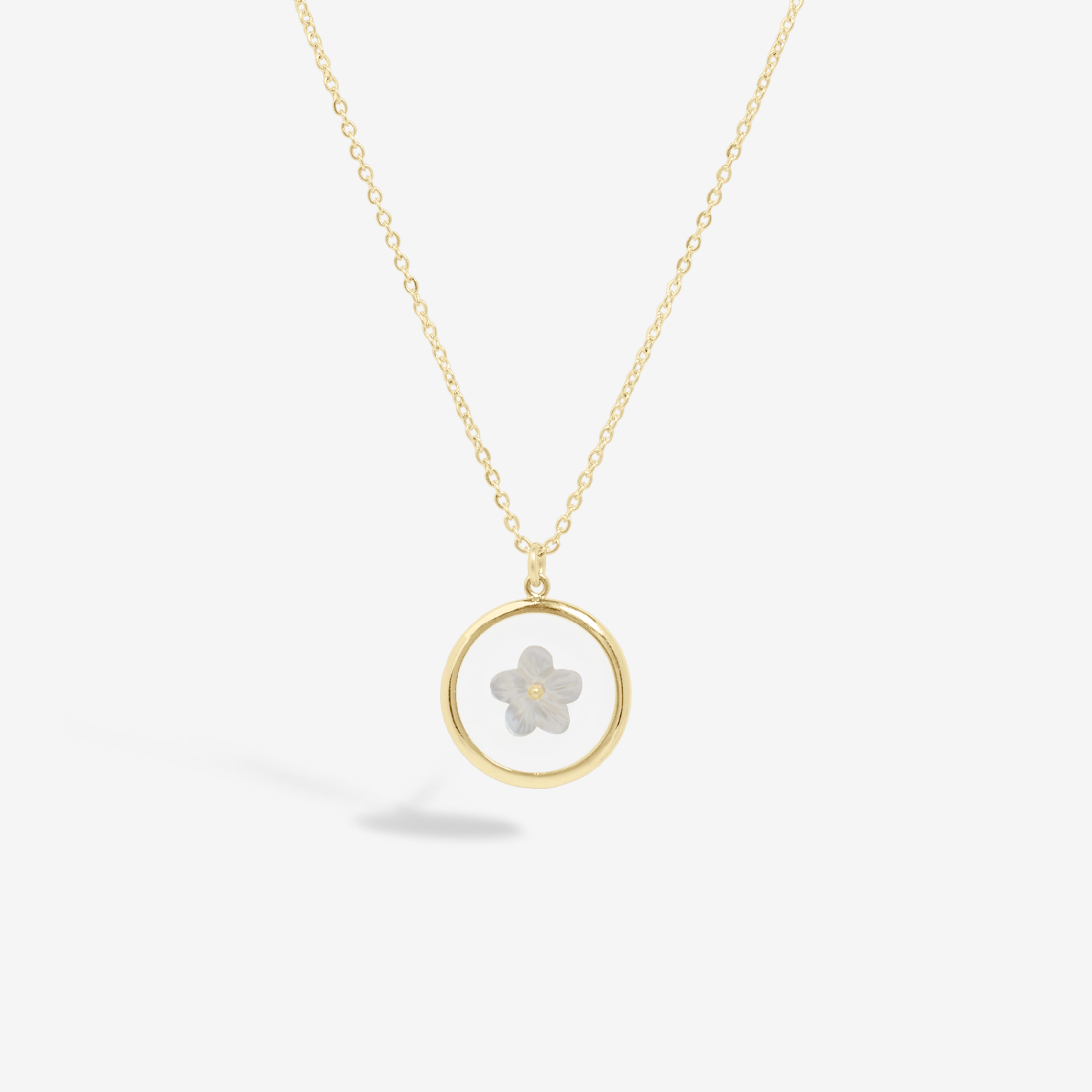 - Collier doré 1 micron, fleur en nacre et résine