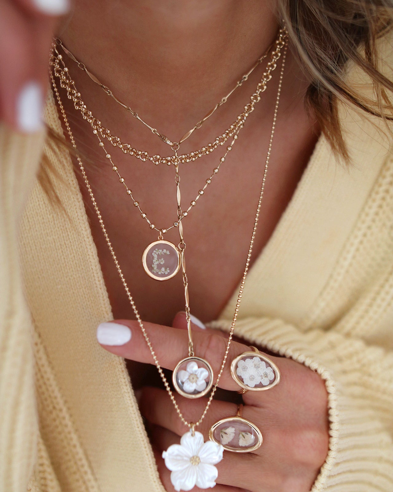 - Bague en plaqué or, résine et fleurs séchées naturelles