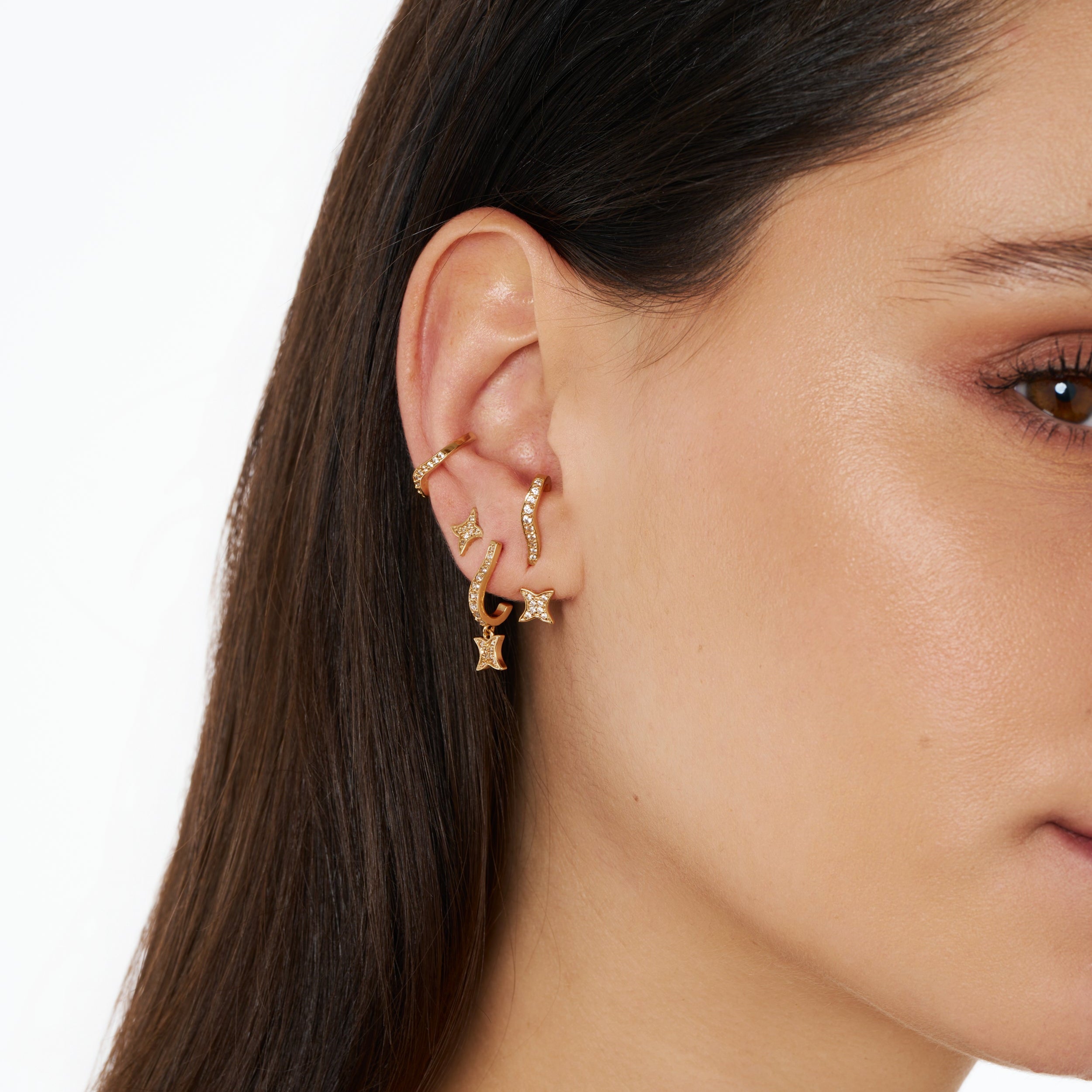 Puce d'oreille dorée 1 micron et zircons blancs