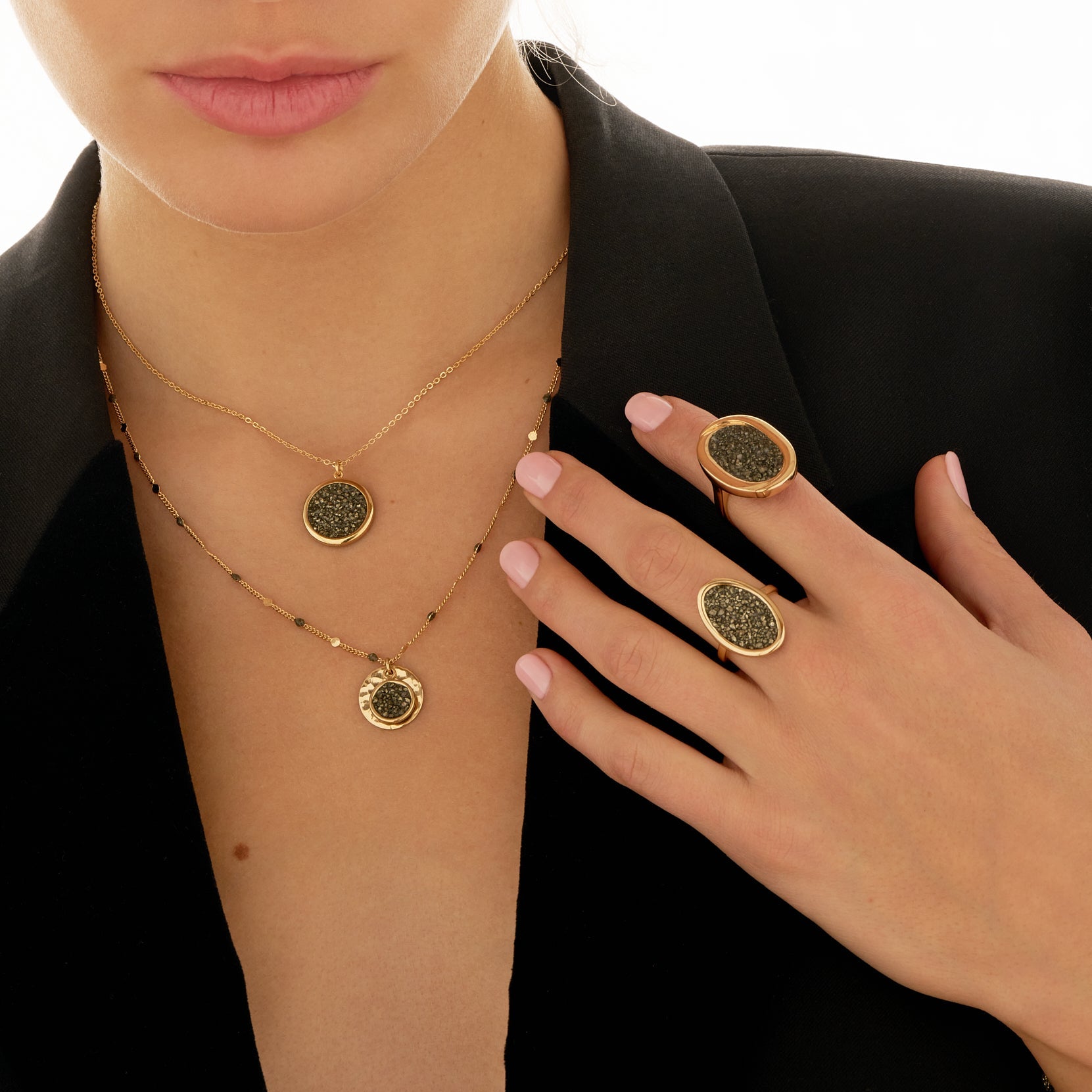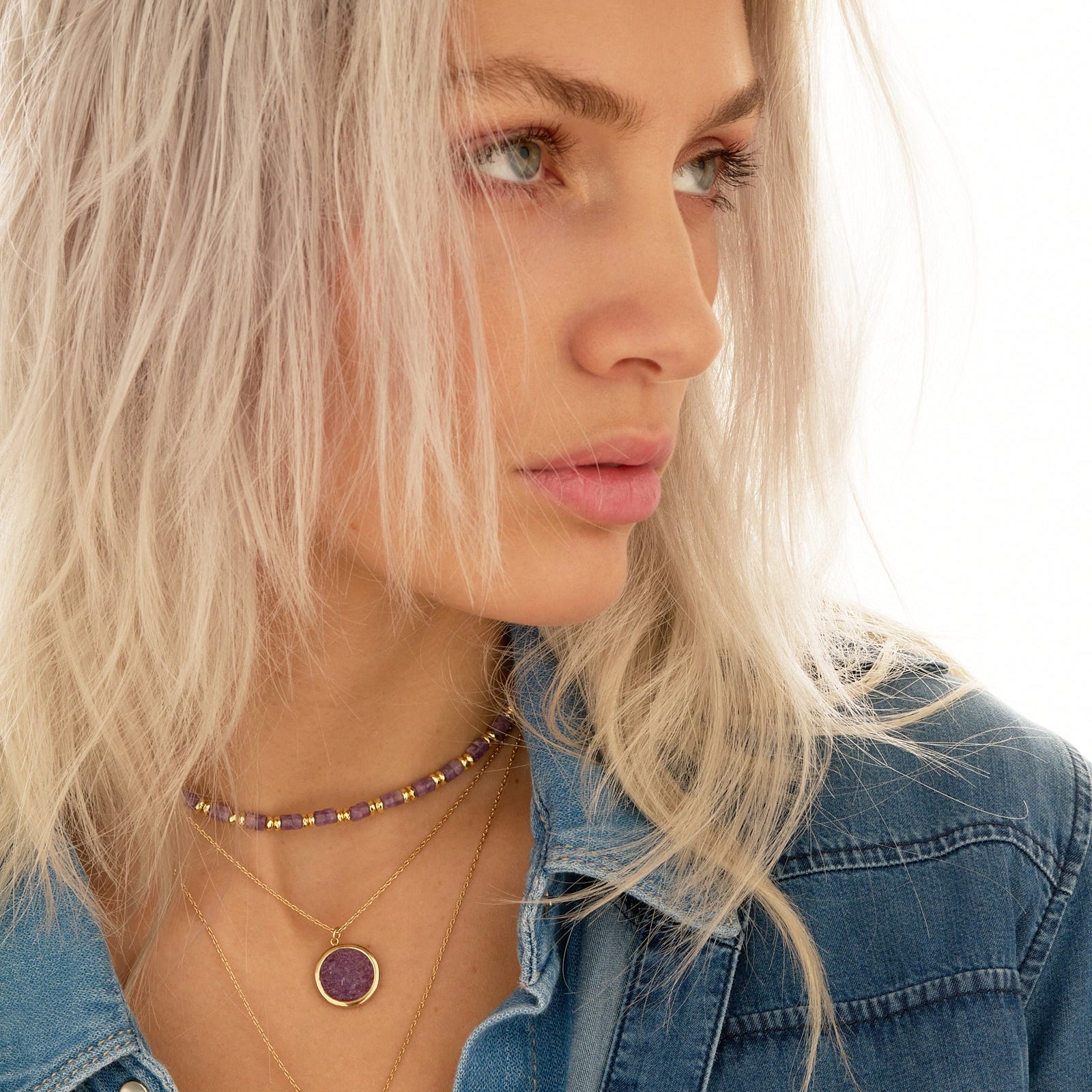 - Collier réalisé artisanalement dans notre atelier parisien. Chaque pièce est unique et présente ses propres irrégularités (variations de couleur et de taille des fragments de pierre).