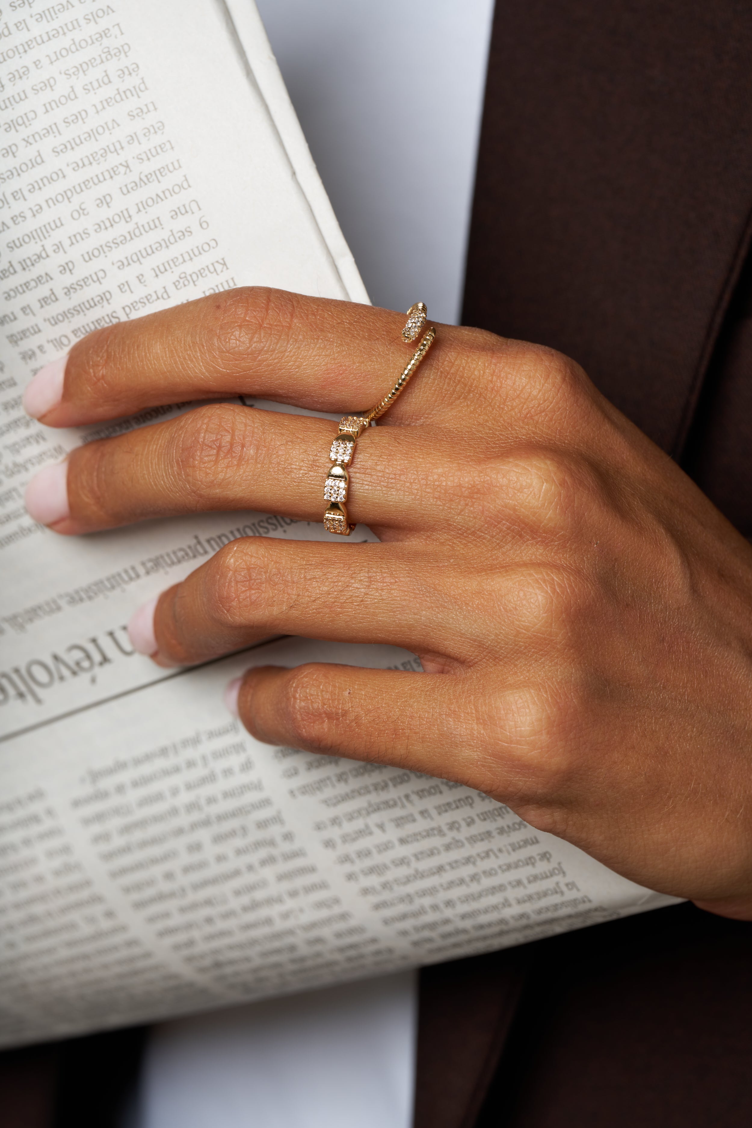 - Bague réglable en plaqué or et zircon