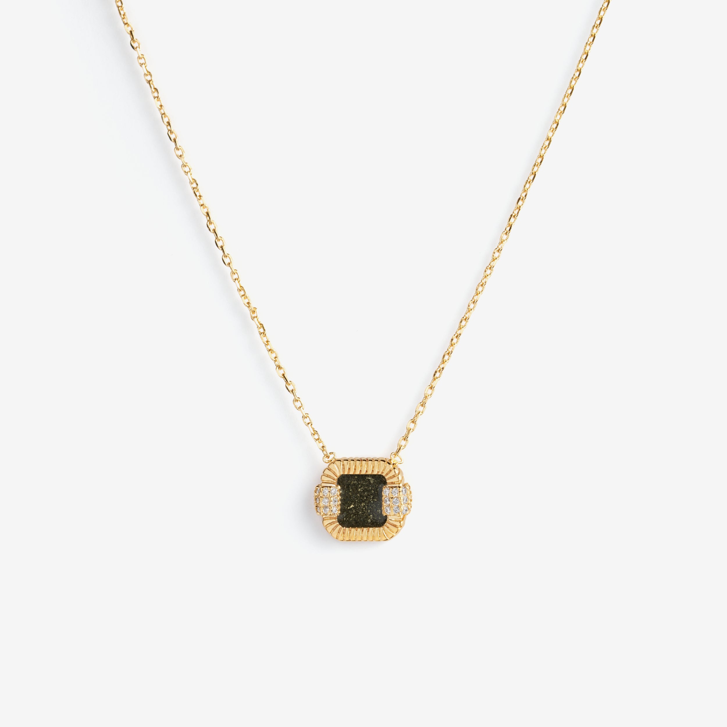- Collier doré 1 micron, zirconium, résine et fragments de pierres fines