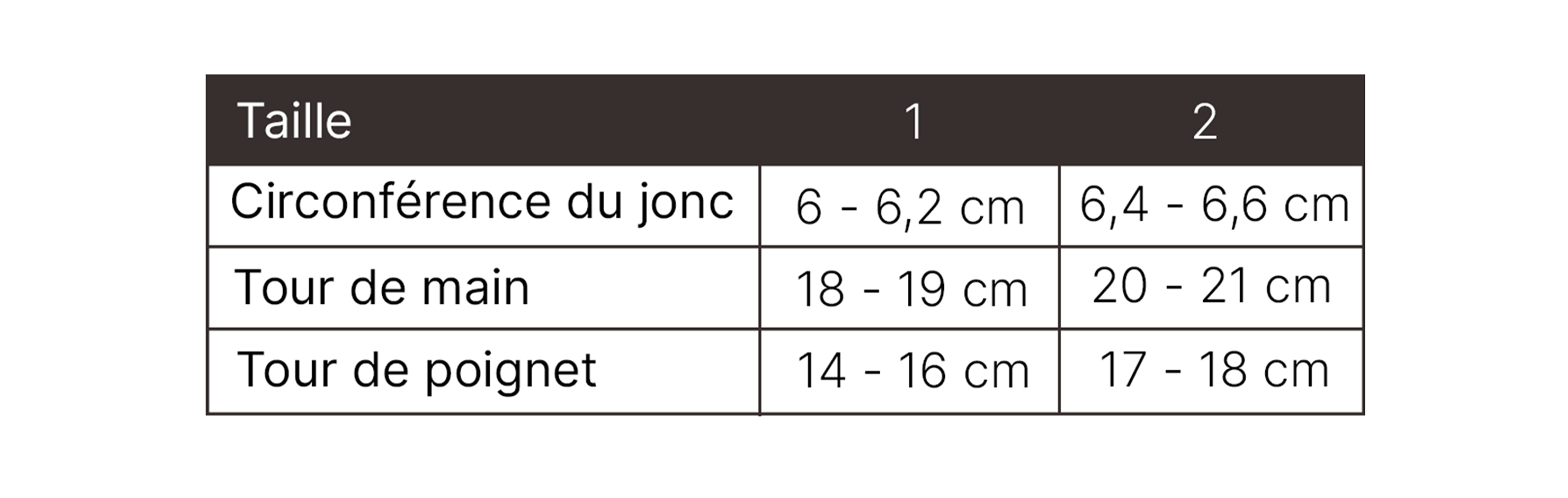 2. Référez-vous au tableau pour connaître votre taille de bague.