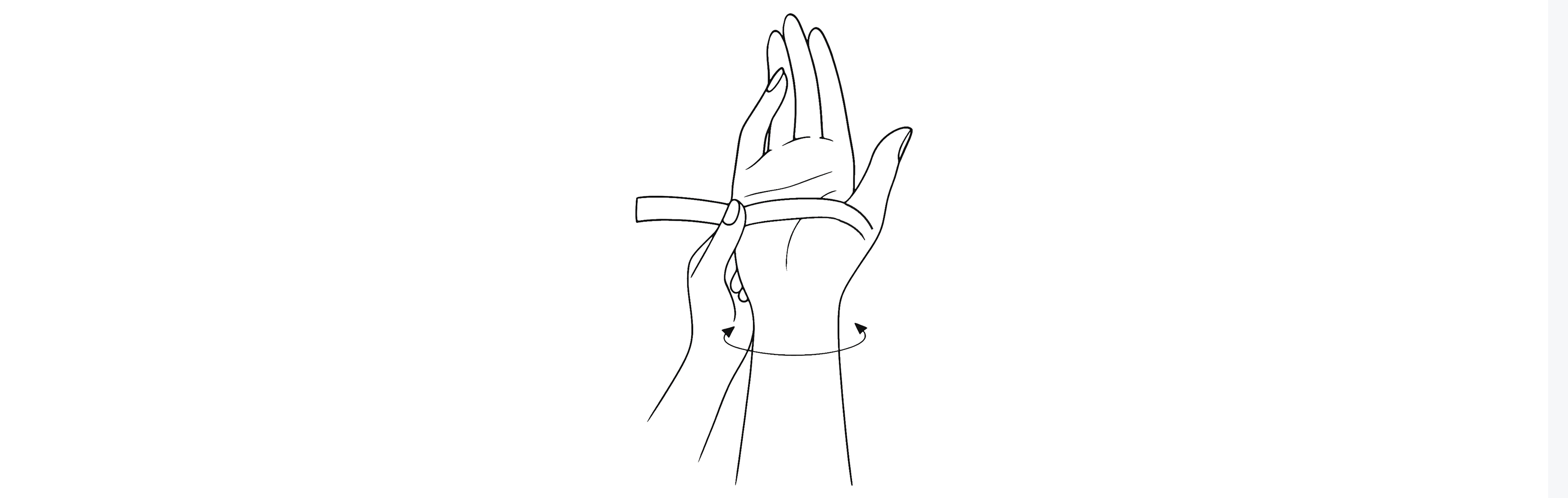 1. Positionnez le ruban à l'endroit ou la main est la plus forte (au niveau de la première phalange du pouce) en repliant votre pouce