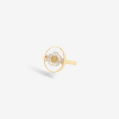 - Boucle d'oreille créole doré 1 micron, résine et fleurs en nacre