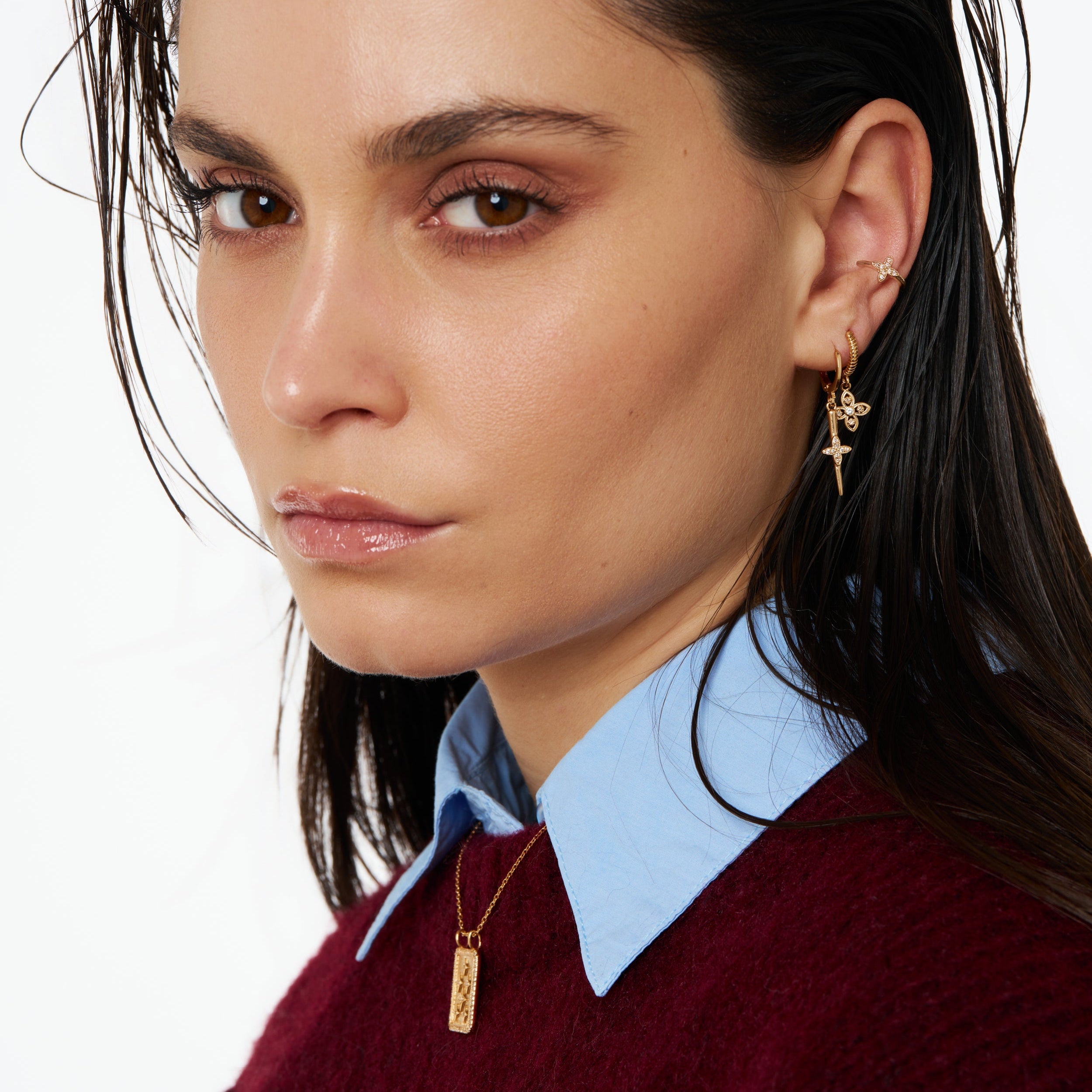 Bijou doré à l'or réalisé sur une base en laiton, sans nickel, ni cadmium. L’épaisseur d’or déposé est de 1 micron sans dispersion pour optimiser la tenue de la couleur.